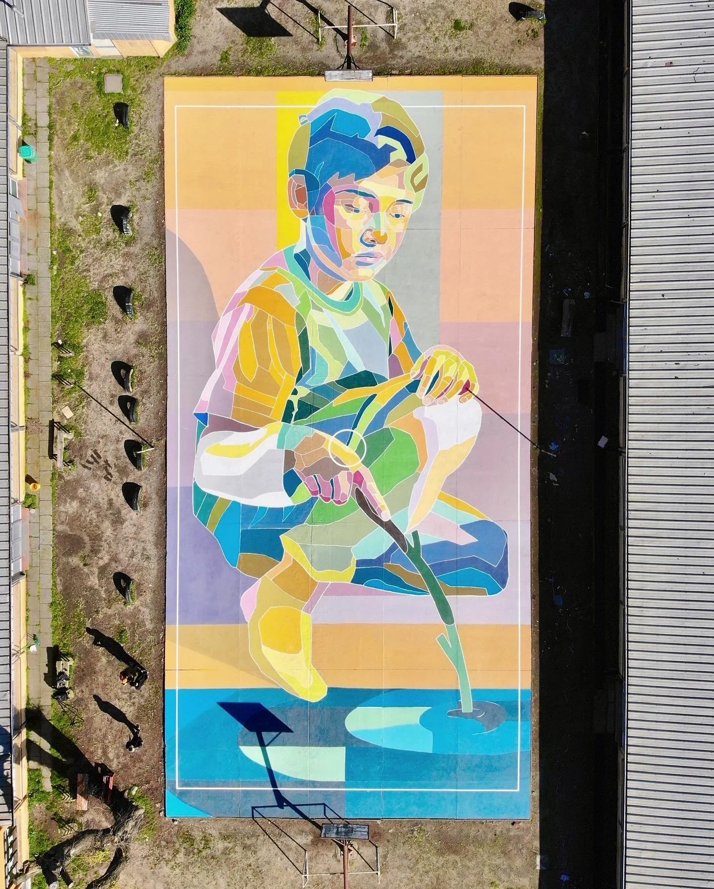 Piero Maturana est un artiste, peintre et muraliste qui a développé un style unique : une peinture mosaïque colorée qui s’organise avec douceur pour donner vie à des personnages et des gestes du quotidien.